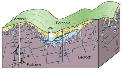 [[File:weathered basement. | [[File:weathered basement.png | 400px | thumb| Weathered basement aquifer |left ]] | ||