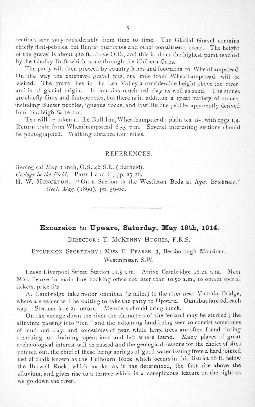 | description | English: Geologists' Association Circular No. 166. Session 1913-1914. p.5. Excursion to Ayot and Wheathampstead. Saturday, May 9th, 1914. |