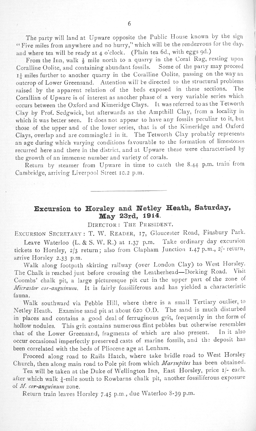 | description | English: Geologists' Association Circular No. 166. Session 1913-1914. p.6. Excursion to Horsley and Netley Heath. Saturday, May 23rd, 1914. |