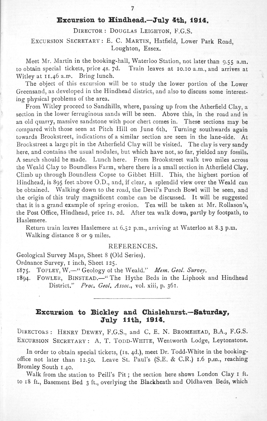 | description | English: Geologists' Association Circular No. 168. Session 1913-1914. p.7. Excursion to Hindhead, Saturday, July 4th, 1914. |