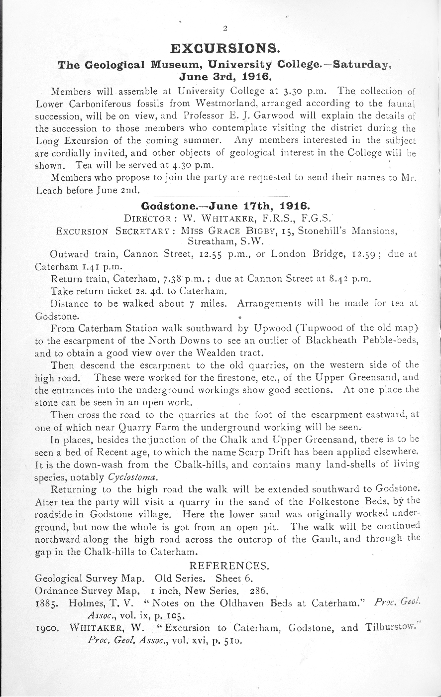 | description | English: Geologists' Association Circular No. 188. Session 1915-1916 p.2. Excursion to Godstone, Saturday, June 17th, 1916. |