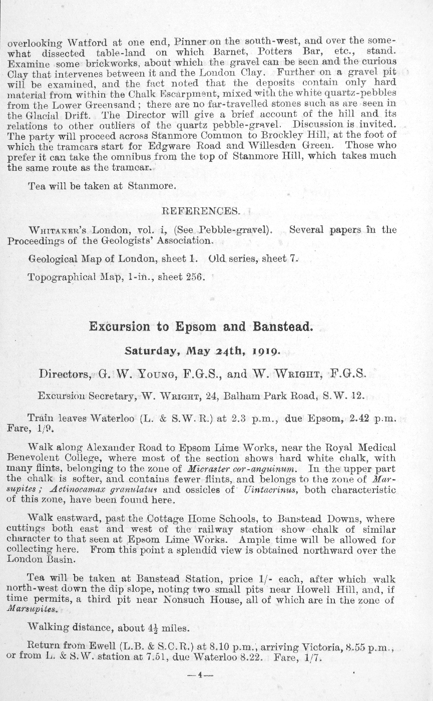 | description | English: Geologists' Association Circular No. 217. Session 1919-1920. p.4. Excursion to Epsom and Banstead. Saturday, May 24th, 1919. |