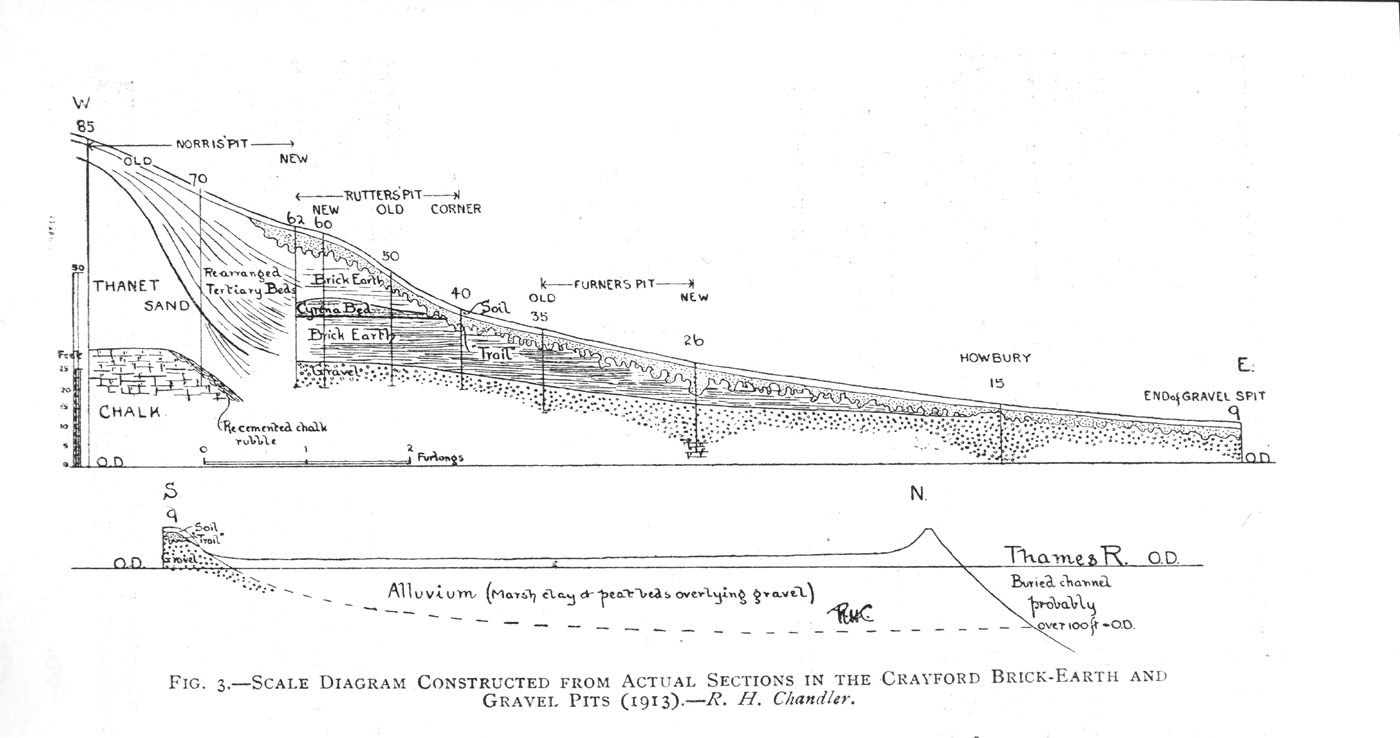 Geologists' Association Circular No. 156. Session 1912-1913. p.13. Excursion to the Pleistocene River Drift at Crayford, and some swallow holes at Barnhurst. Saturday, June 28th, 1913. Copyright: Geologists' Association.