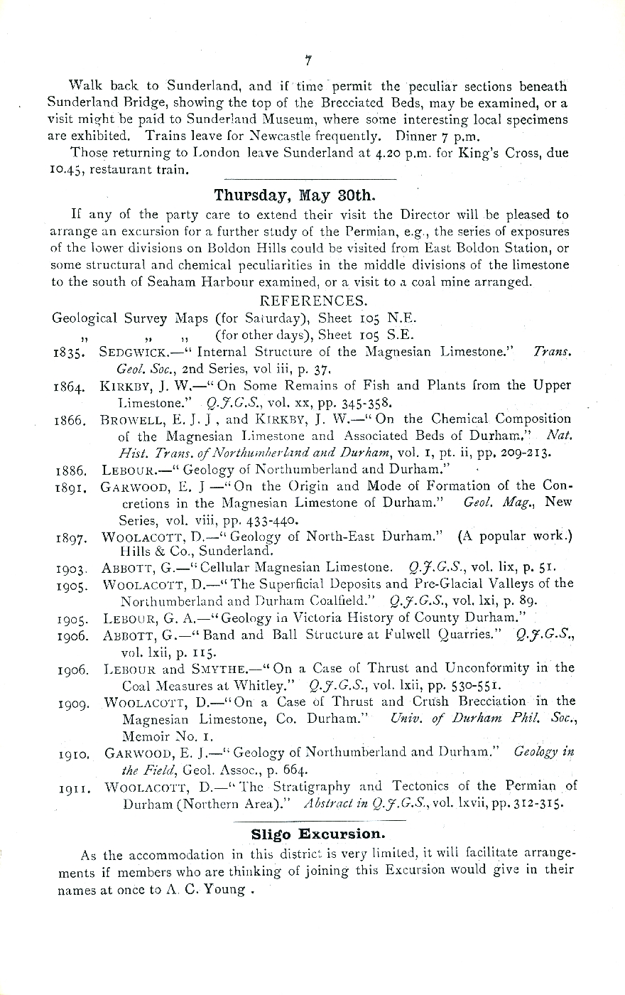 | description | English: Geologists' Association Circular No. 144. Session 1911–1912. p. 7. Excursion to Sunderland and Tynemouth. Whitsuntide, 1912, May 24th to 30th. |